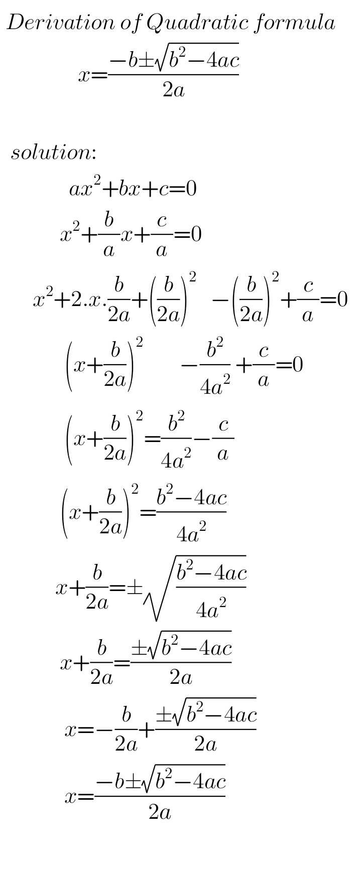 derivation of quadratic formula